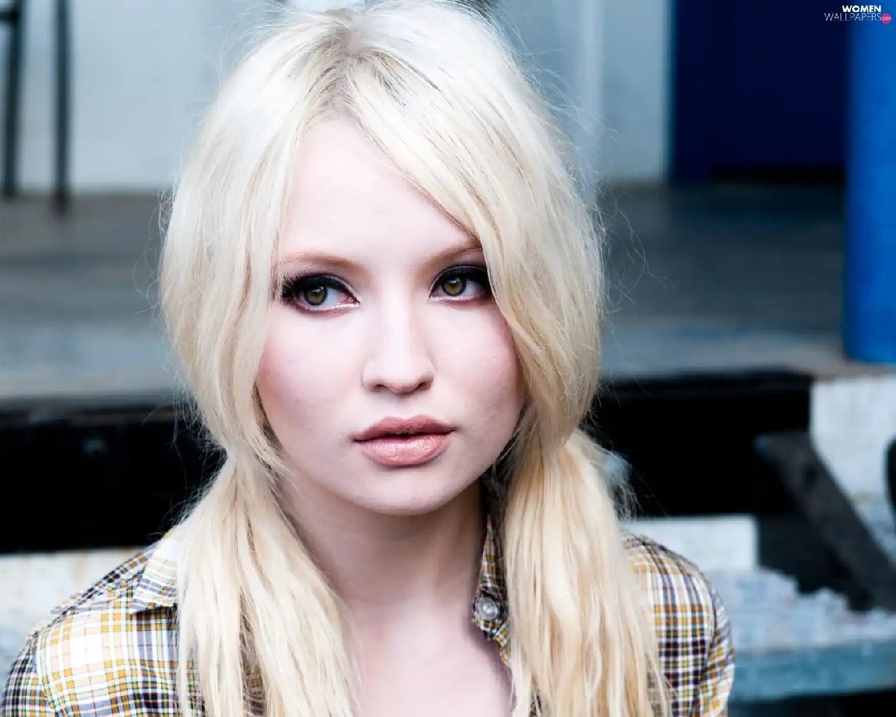 ##, checkered, Blonde, tunic, Emily Browning