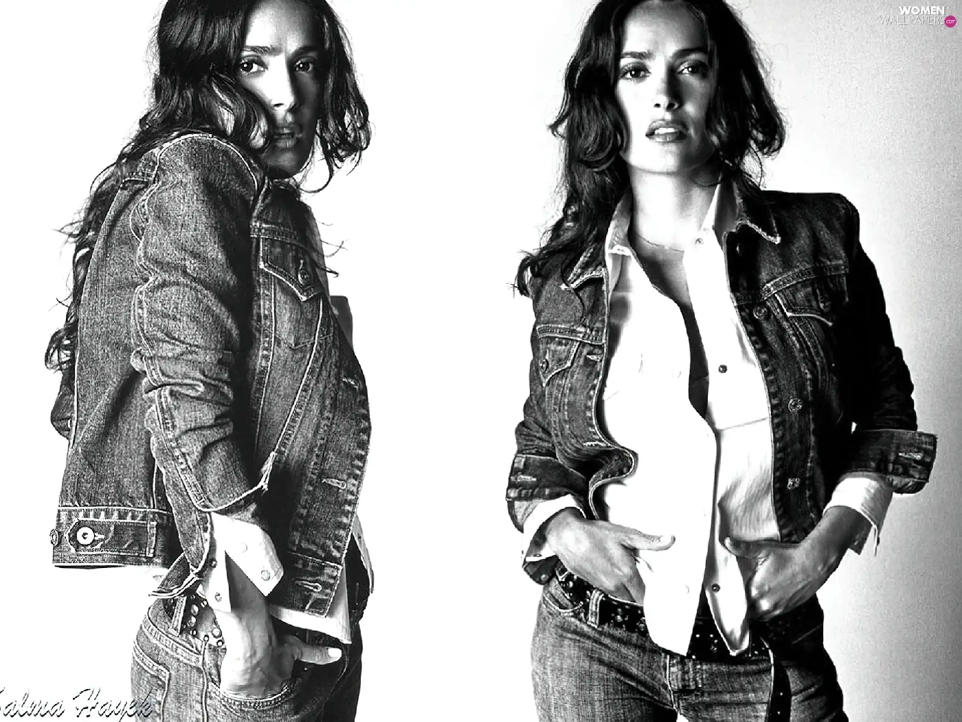katana, Salma Hayek, Denim