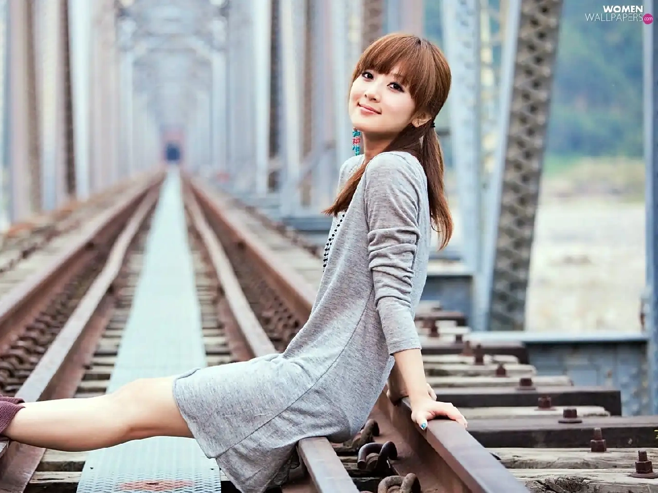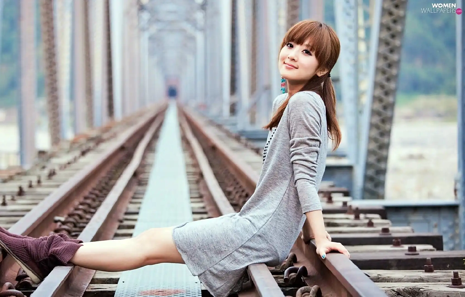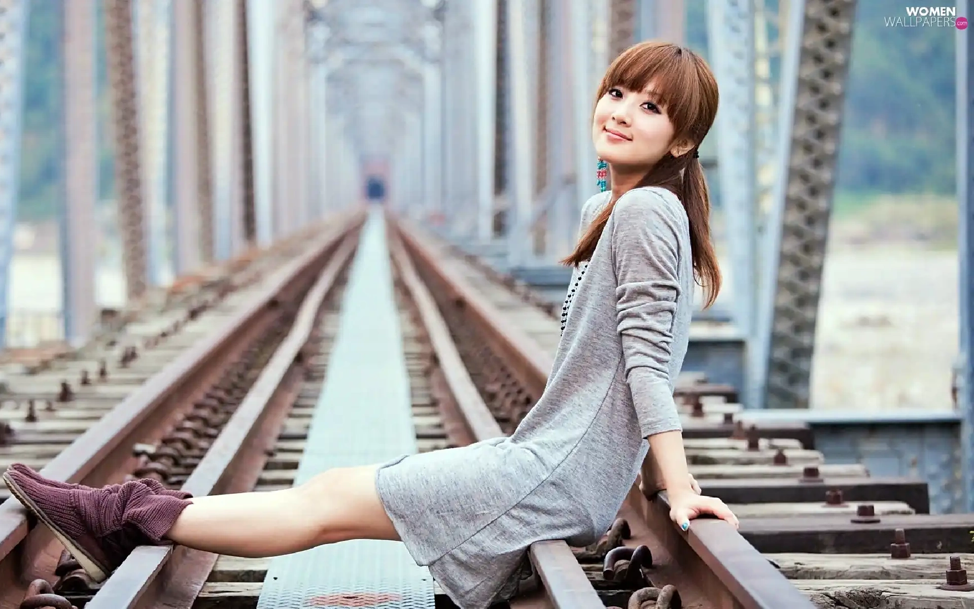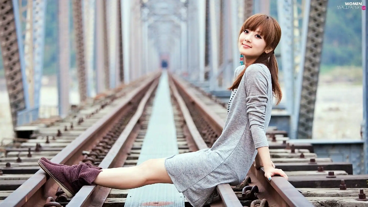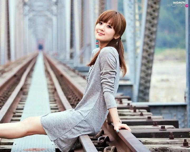 Kaijie, model, blur, bridge, railway, Zhang, Mikako, track