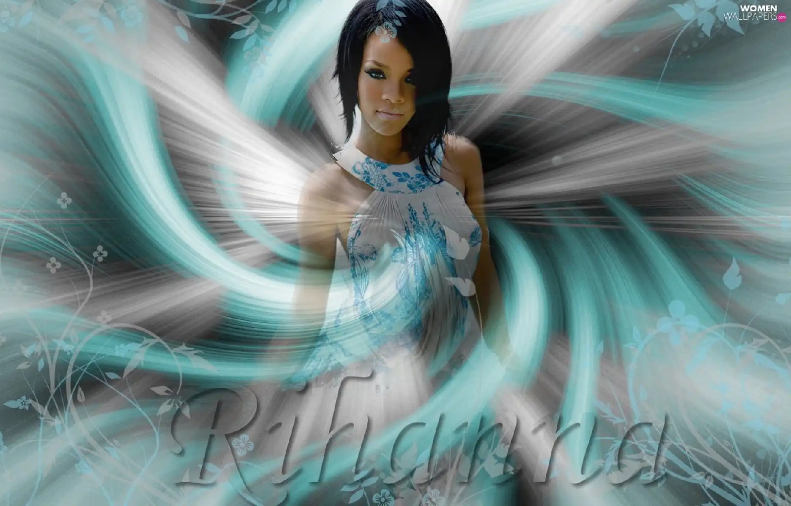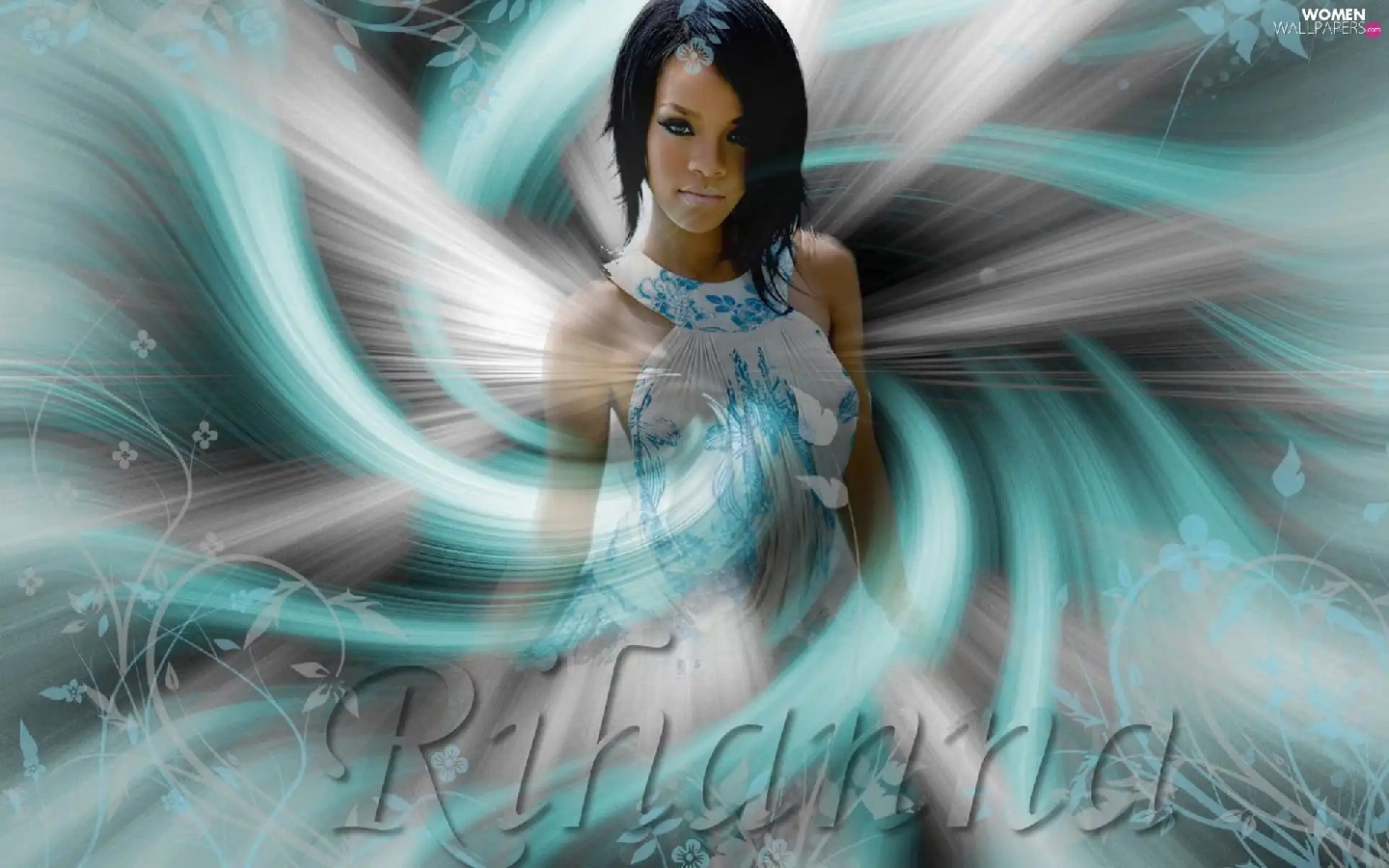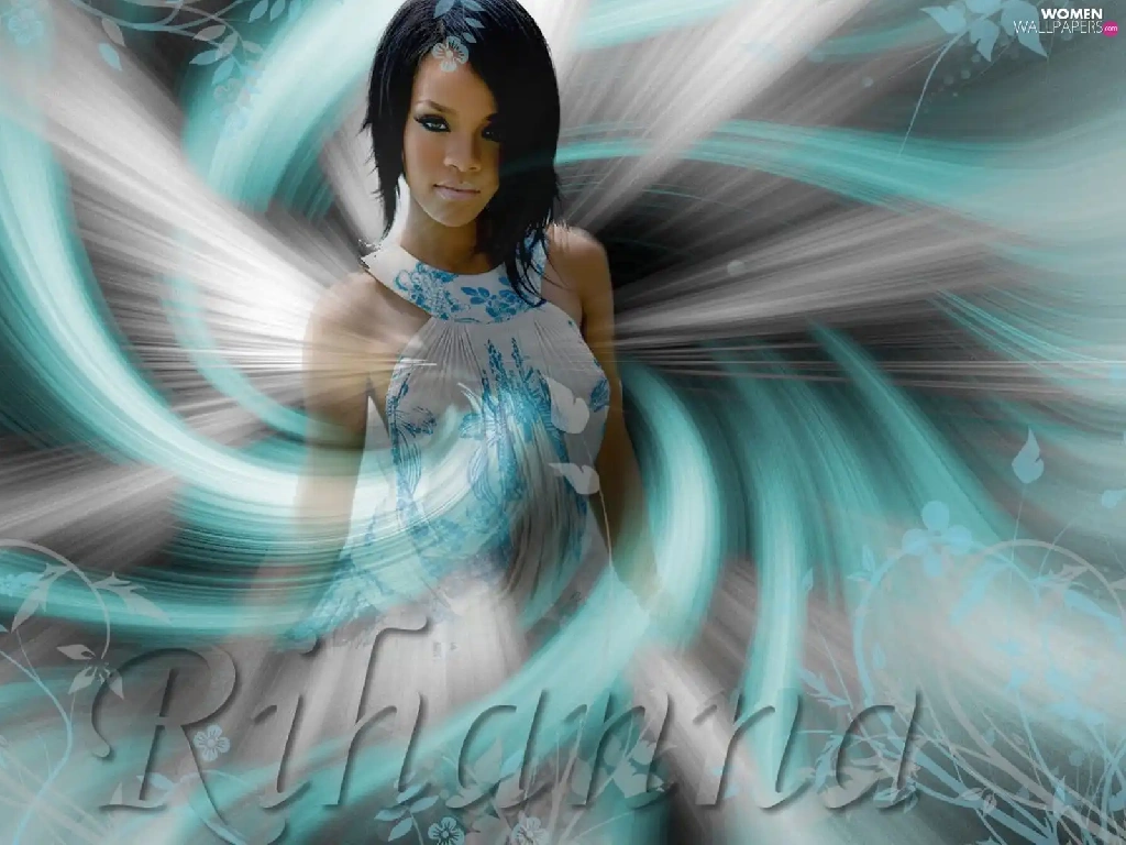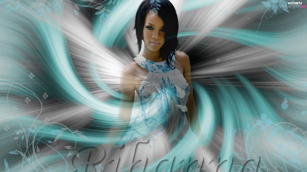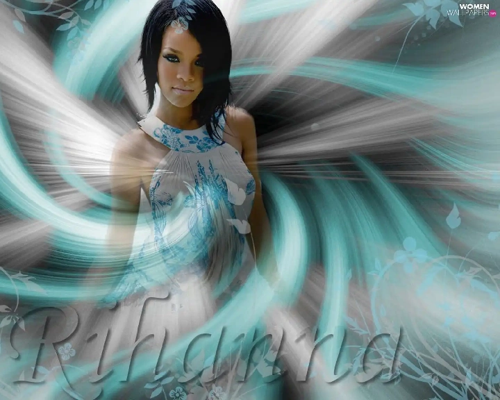 graphics, Waves, Rihanna, blue