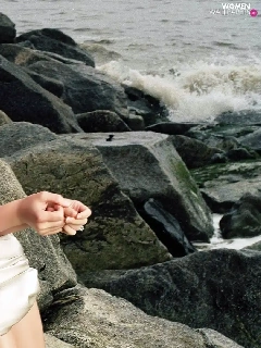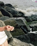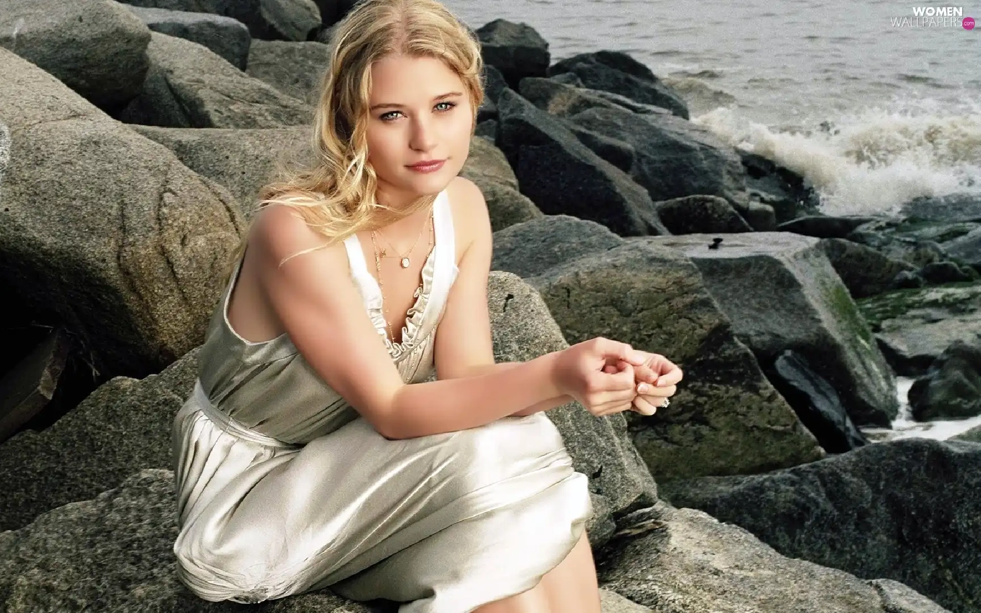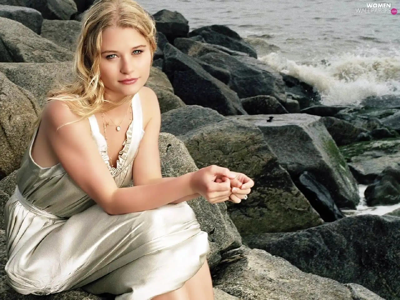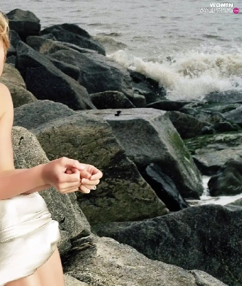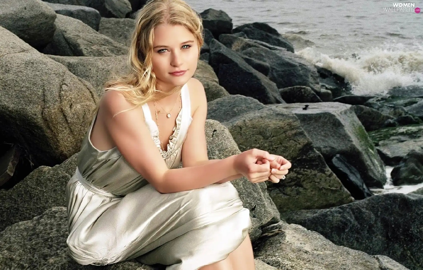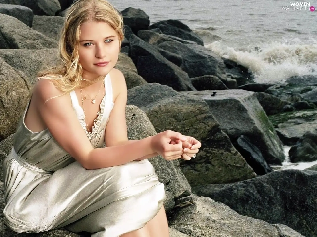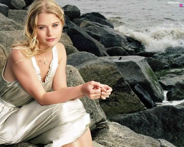 rocks, Emilie De Ravin, sea