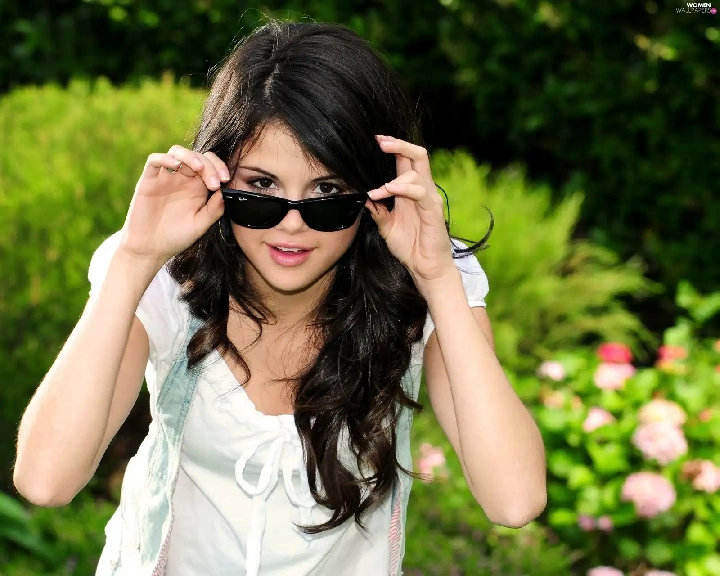 Garden, green, Glasses, Sunscreen, Selena Marie Gomez