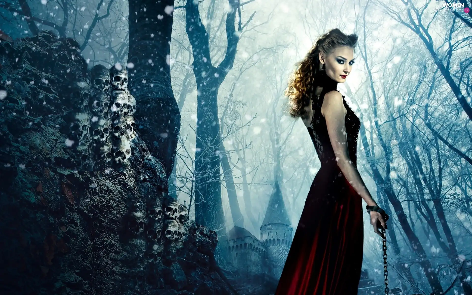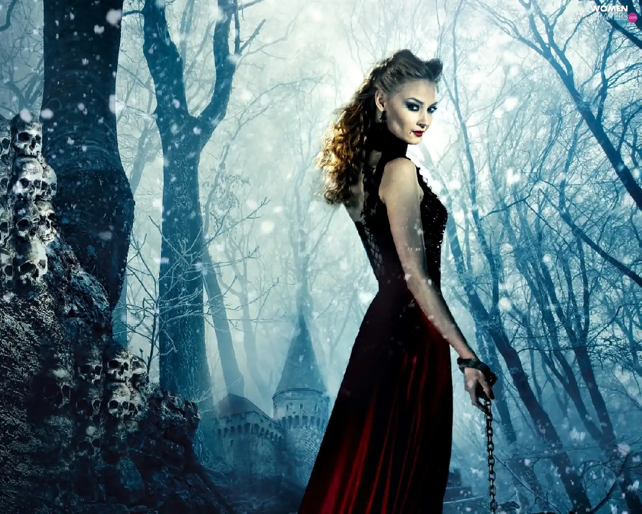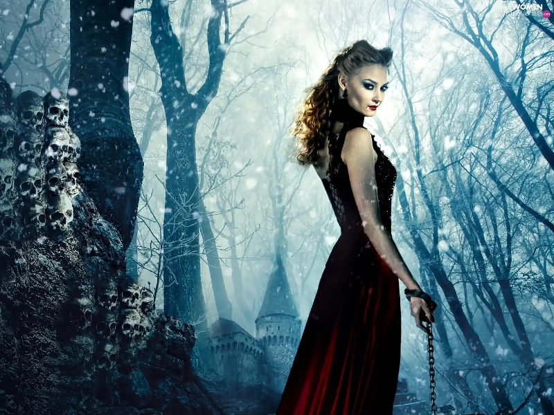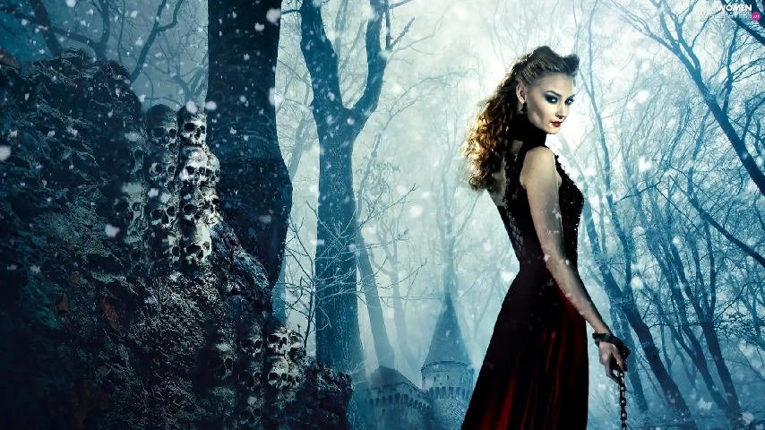 Svetlana Khodchenkova, chain, the skull, forest