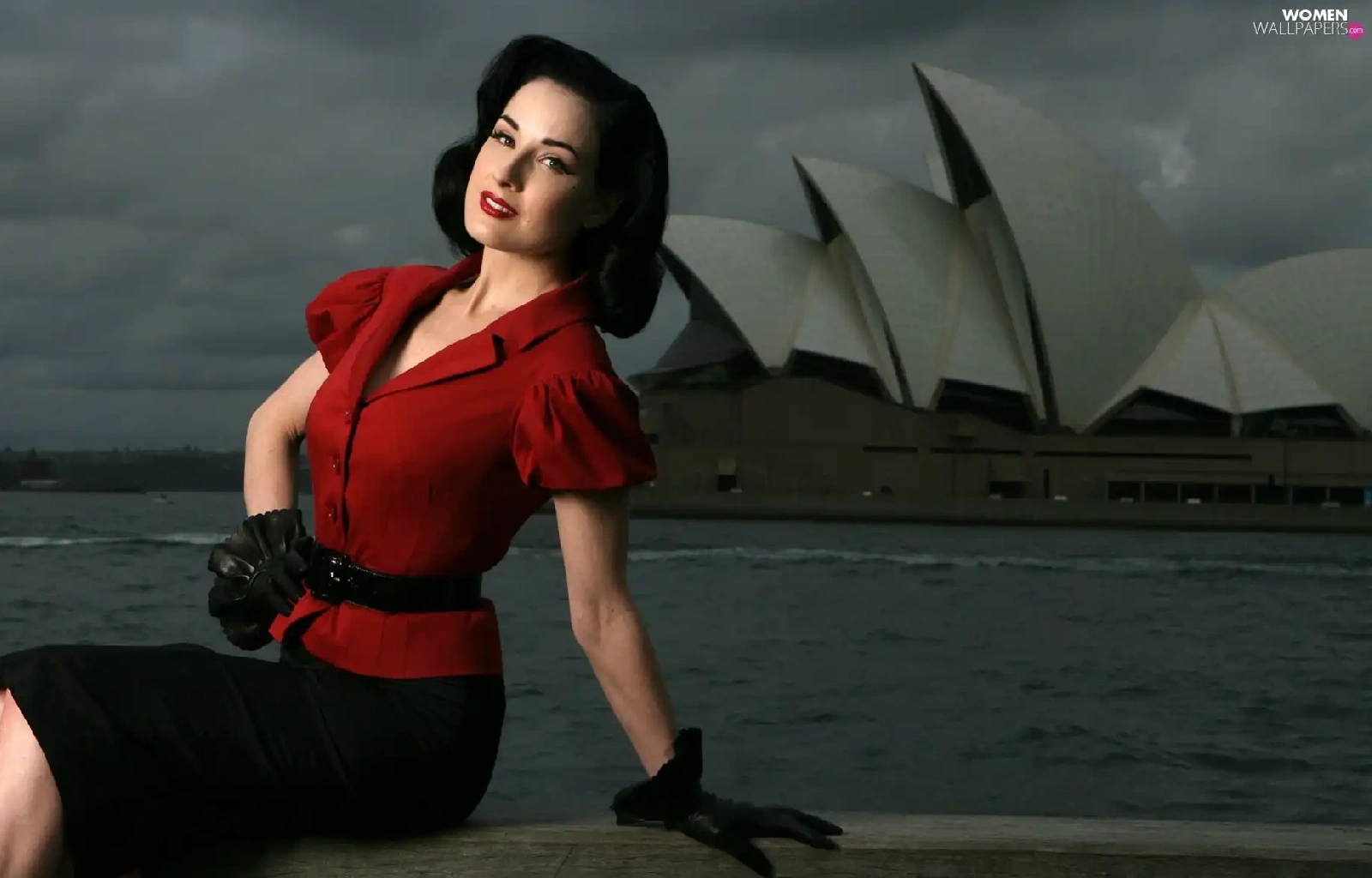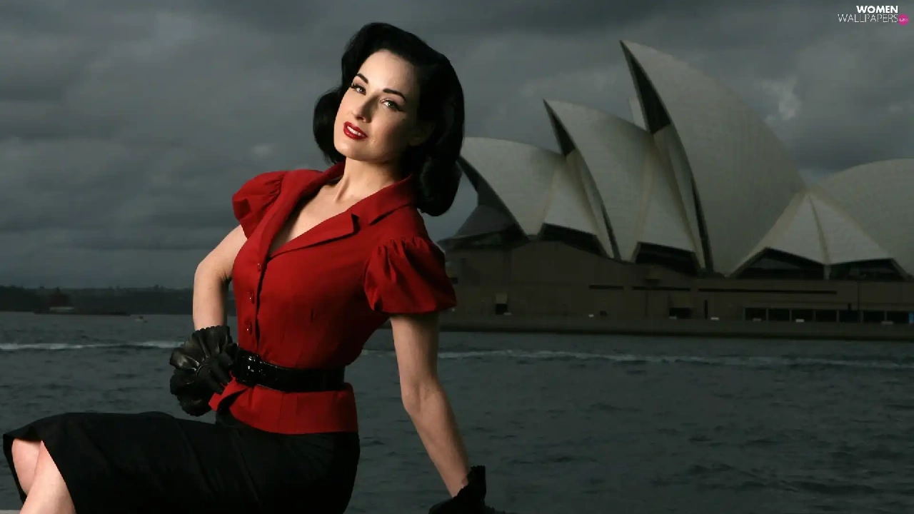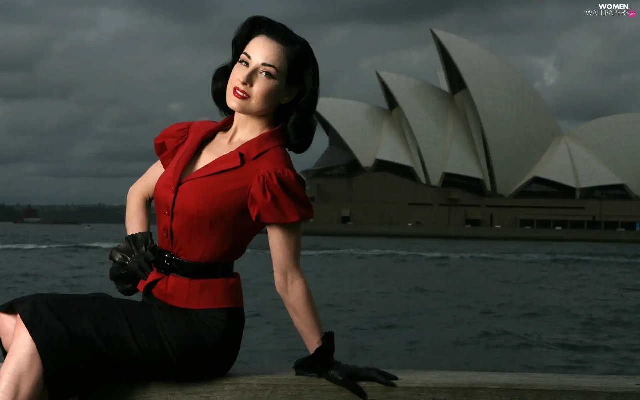 Dita Von Teese, tunic, Gloves, red hot