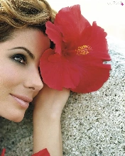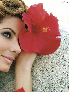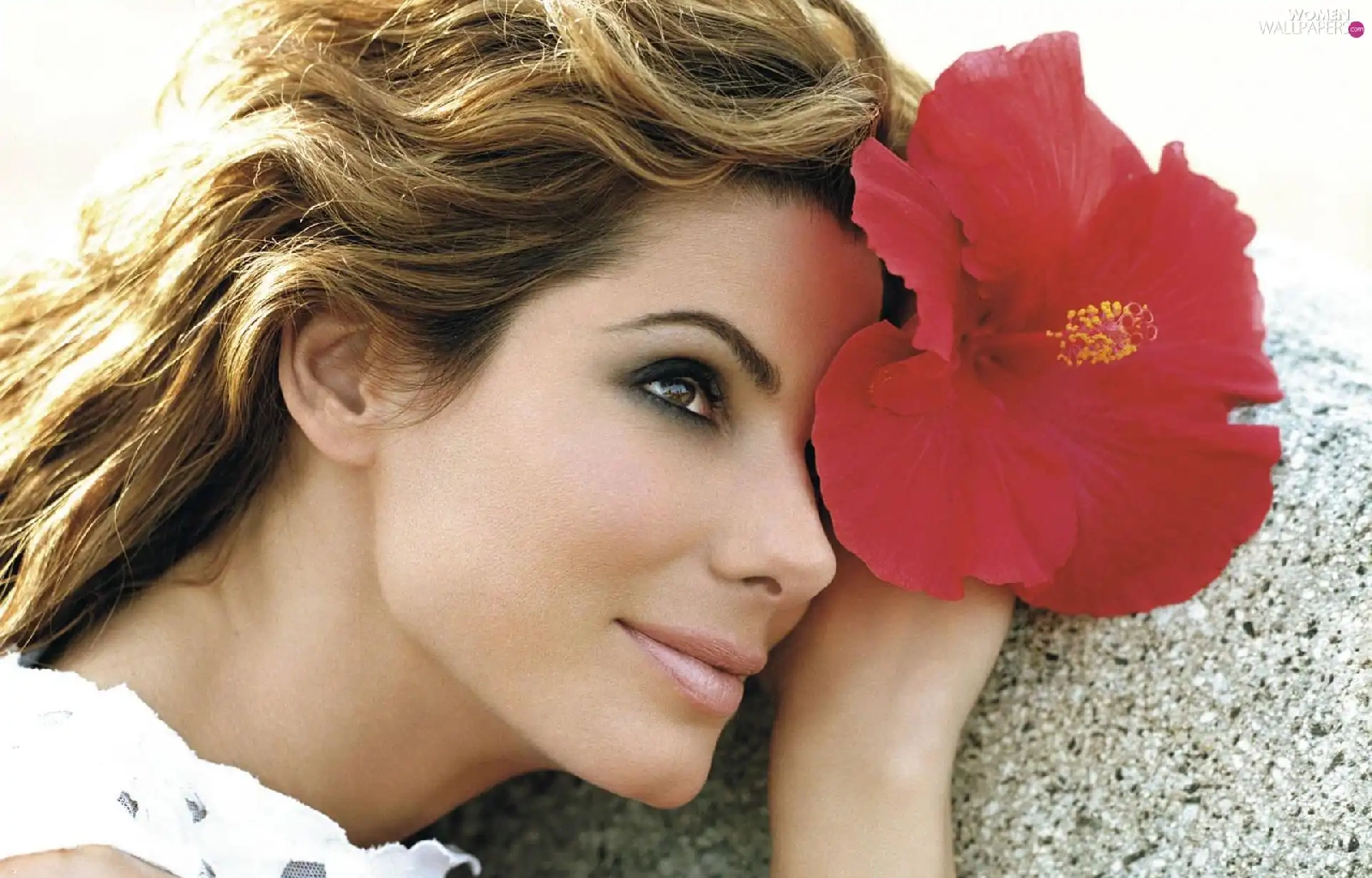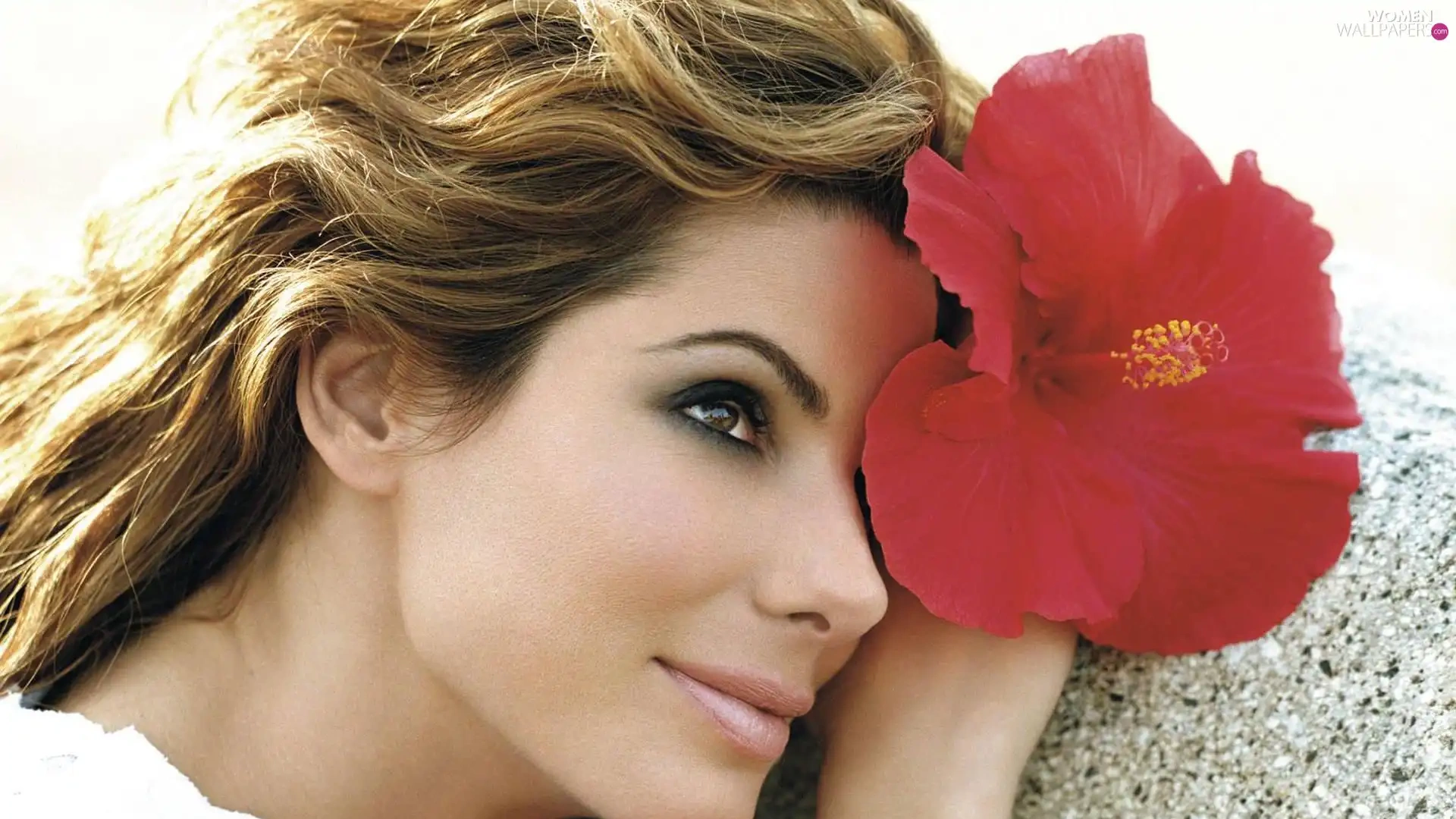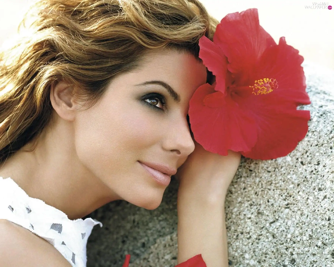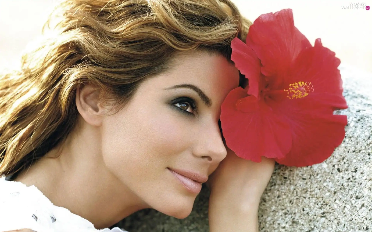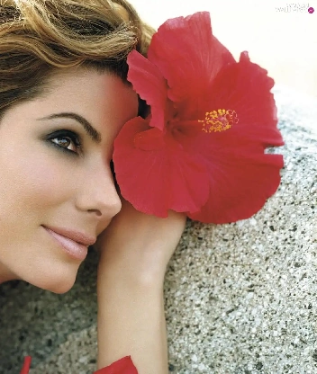 Sandra Bullock, hibiscus, make-up, Colourfull Flowers