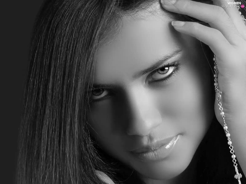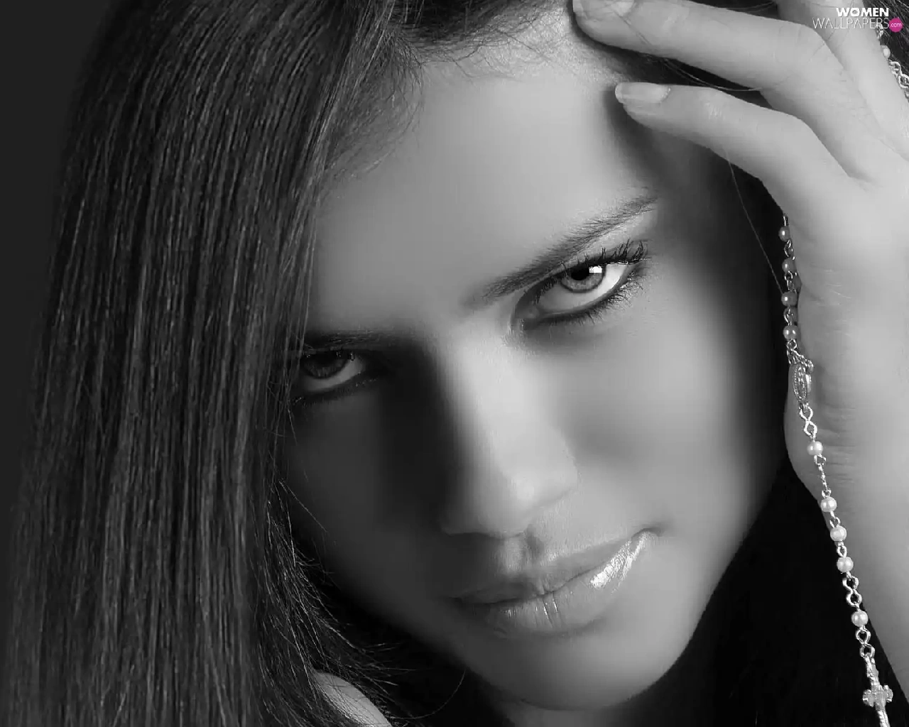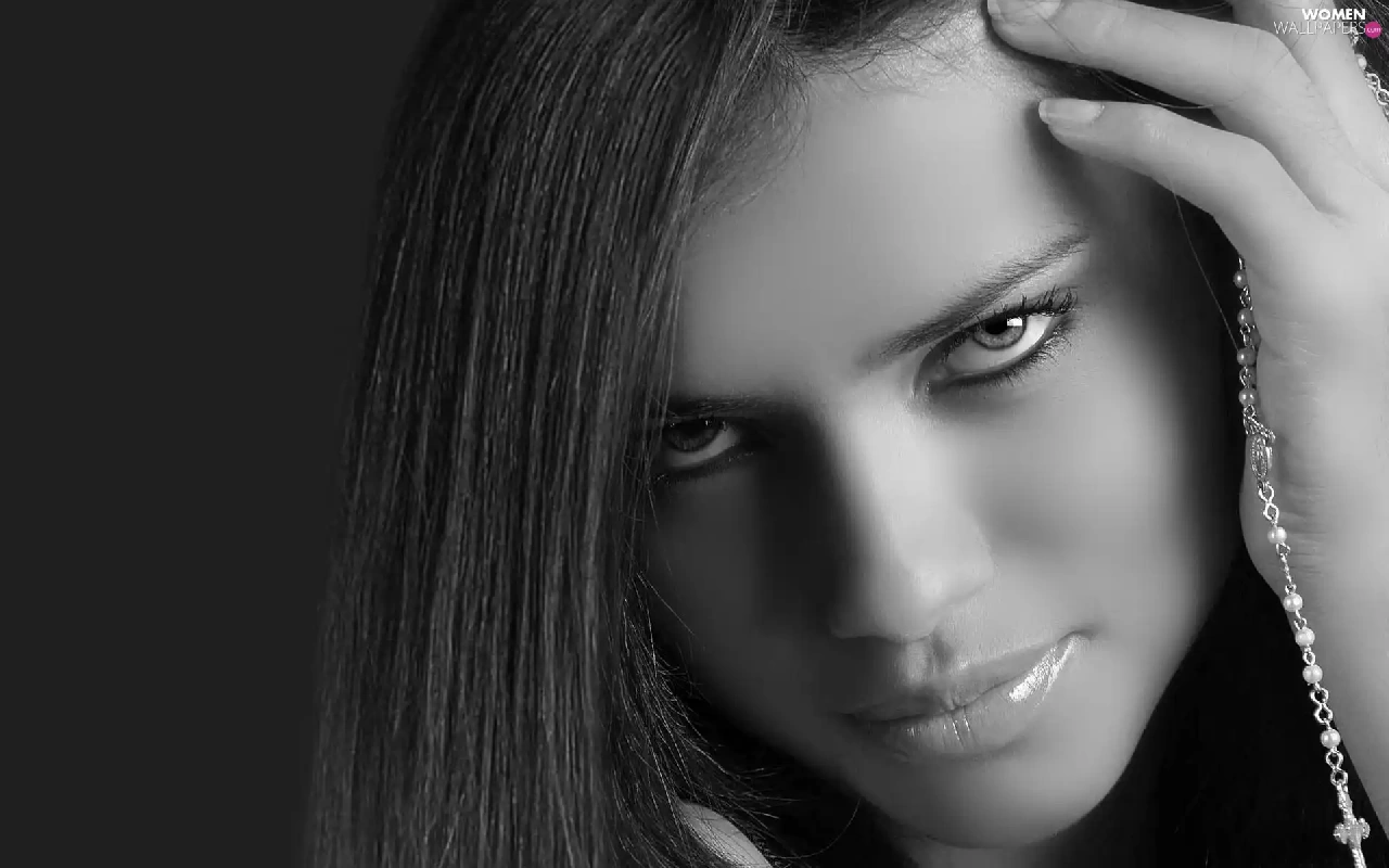 Black and white, Adriana Lima, face